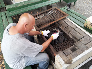 Setting up for the barbecue.